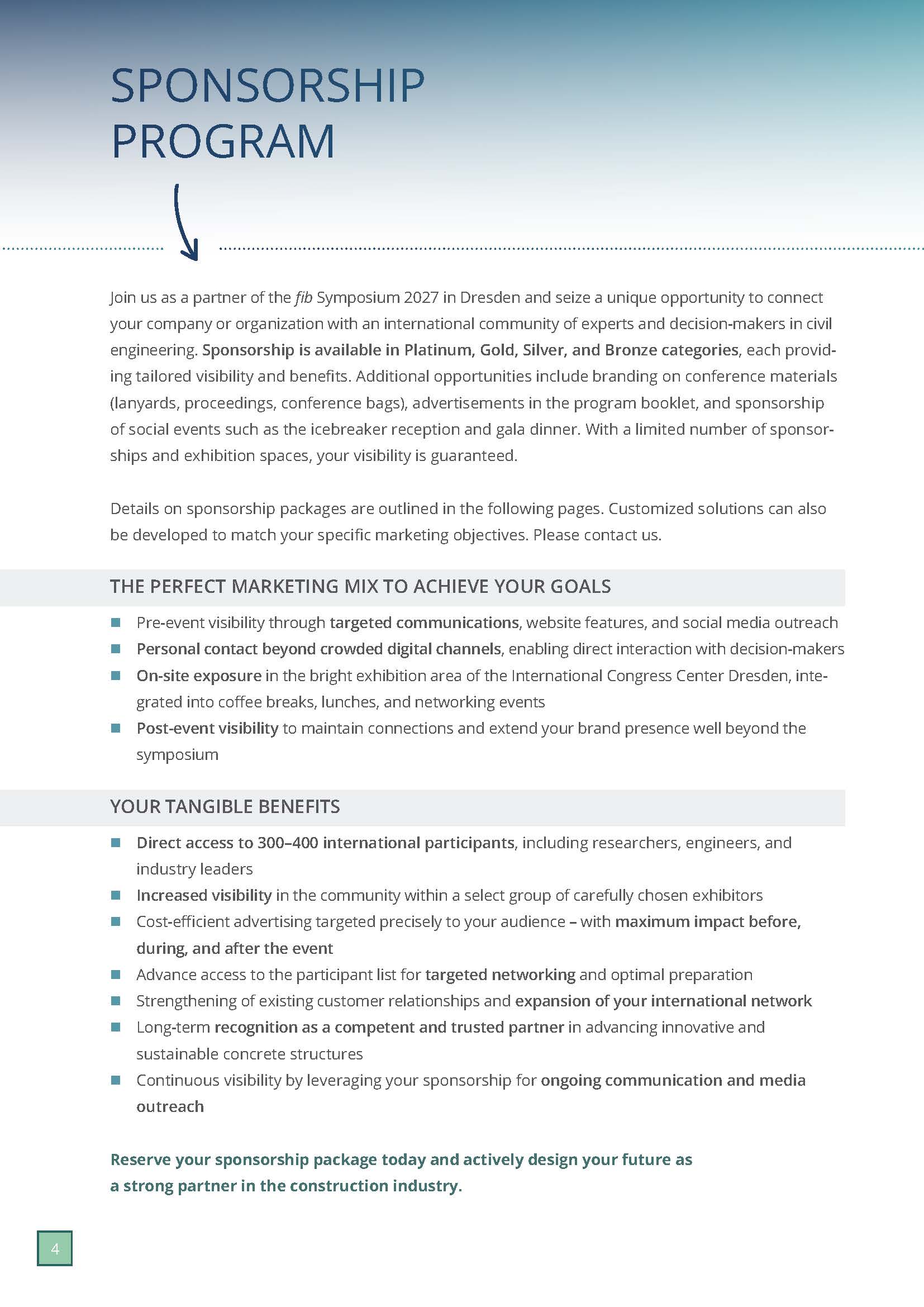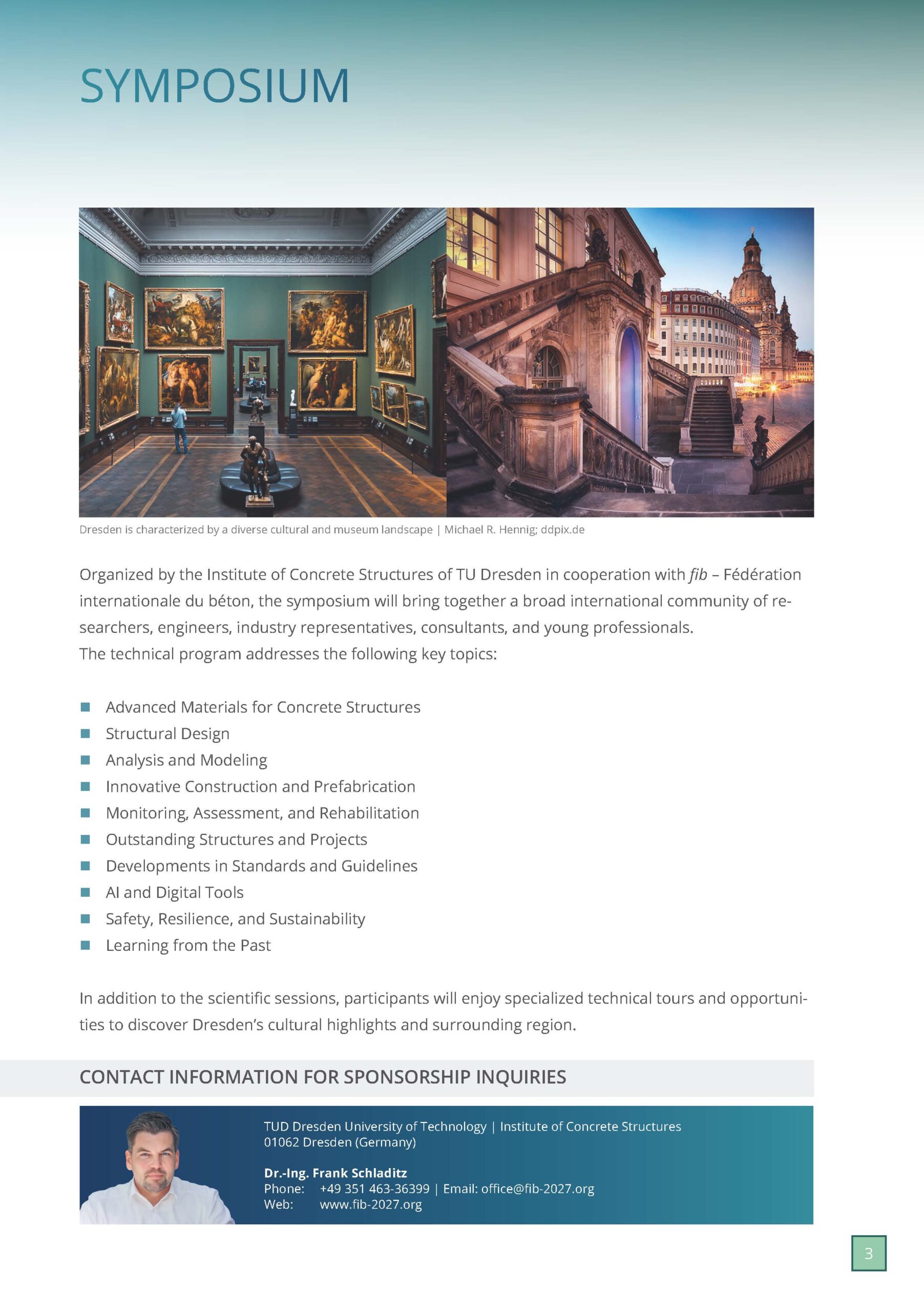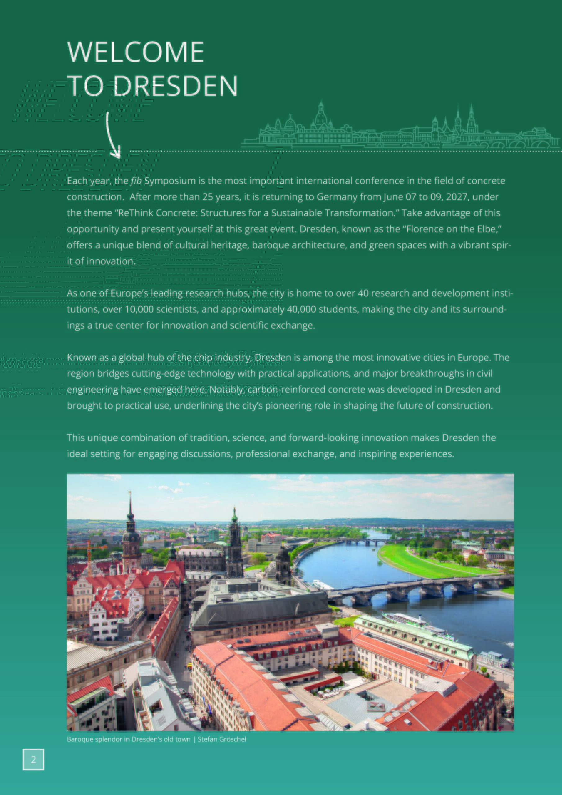 Join us as a partner of the fib Symposium 2027 in Dresden and seize a unique opportunity to connect your company or organization with an international community of experts and decision-makers in civil engineering.